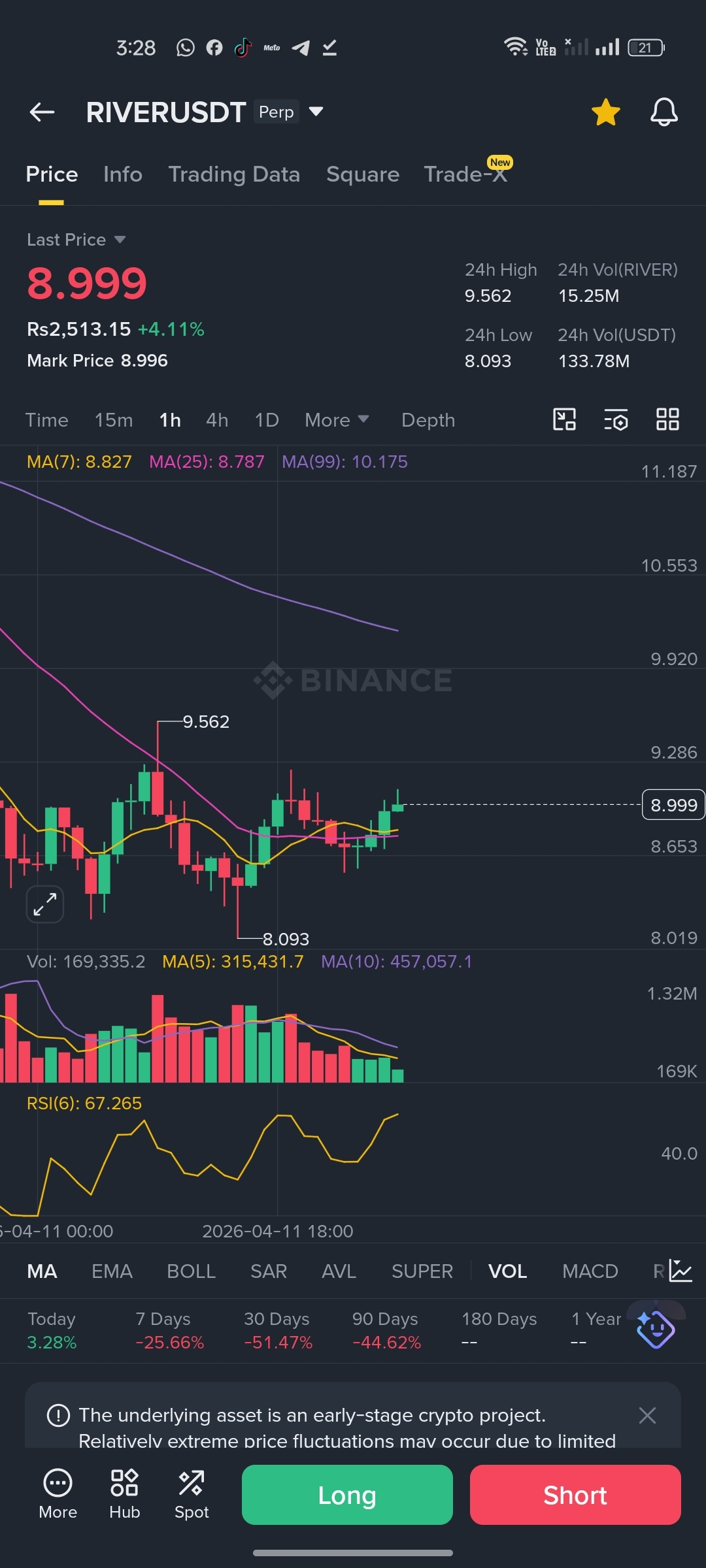 · Mark Price: 8.996 (close to last price)