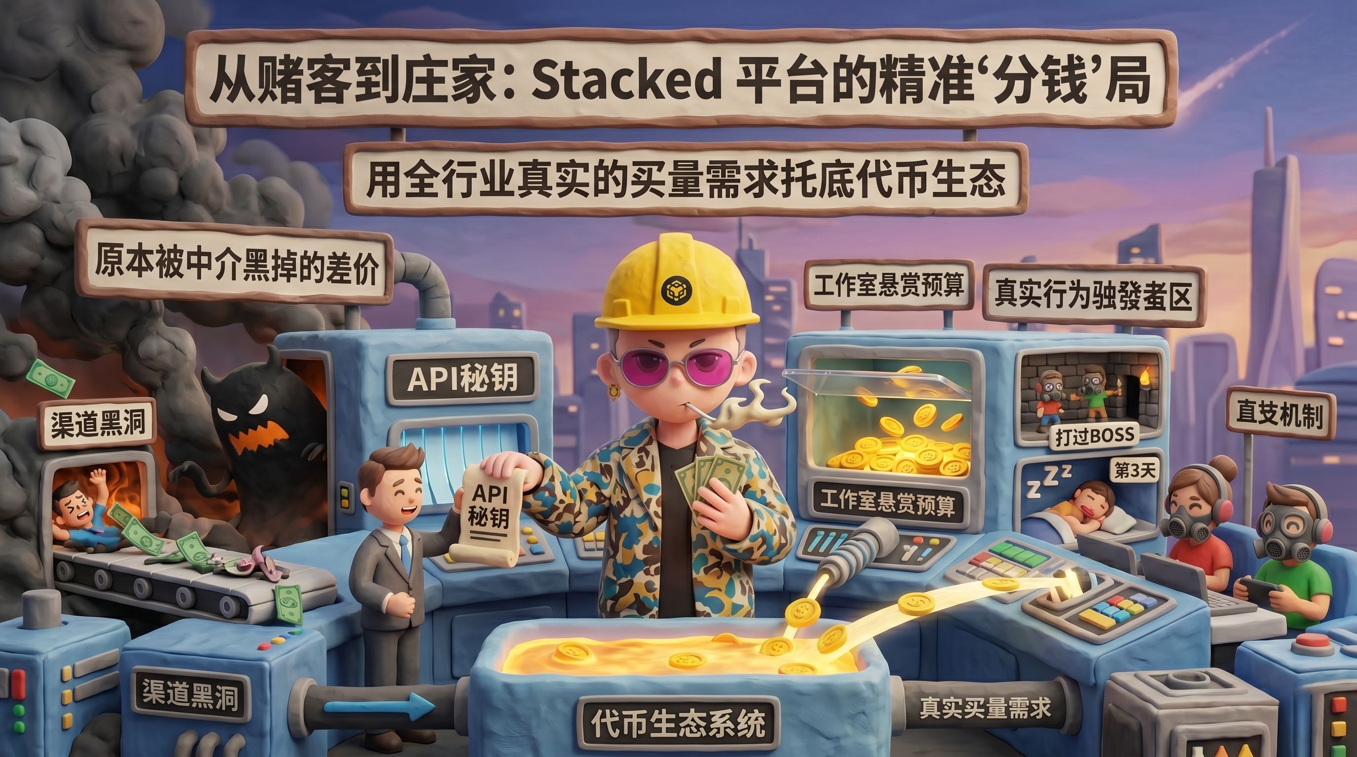 我当时脑子里立马想到了我那个喝闷酒的朋友。要是按他现在的路子,还没赚到一分钱,就得先拿几十万预付款去喂给广告平台。量给你导过来了,是活人还是刷量机器人,平台一概不管,钱概不退。但Stacked弄了个“零预付API”。这是什么概念?工作室不需要提前给任何中介交买路钱。你直接把原本要塞给巨头的预算,挂在这个共享网络里当悬赏。玩家只有在你的游戏里真实地玩到了第三天,或者打过了某个特定的BOSS,才能拿到这笔钱。