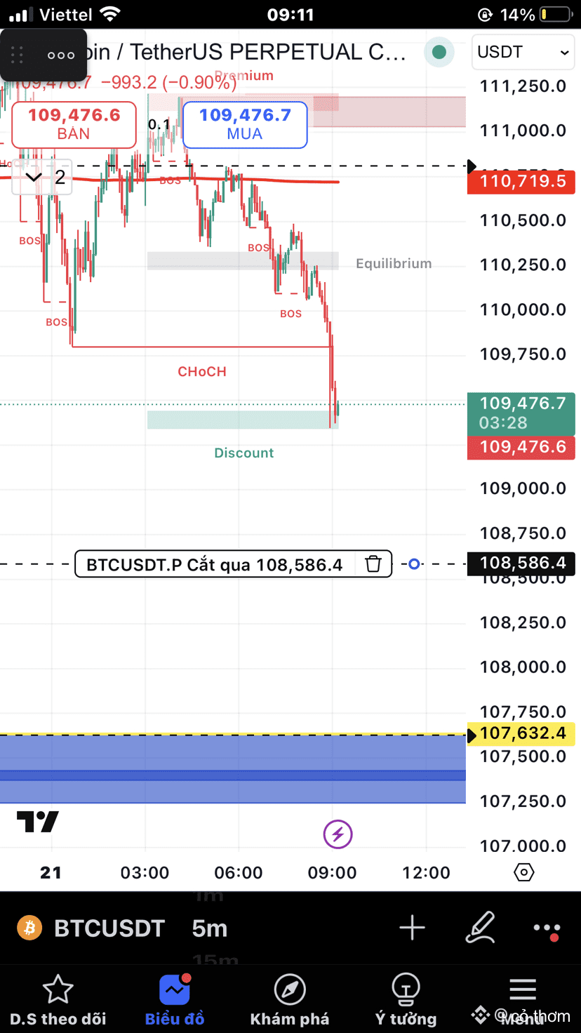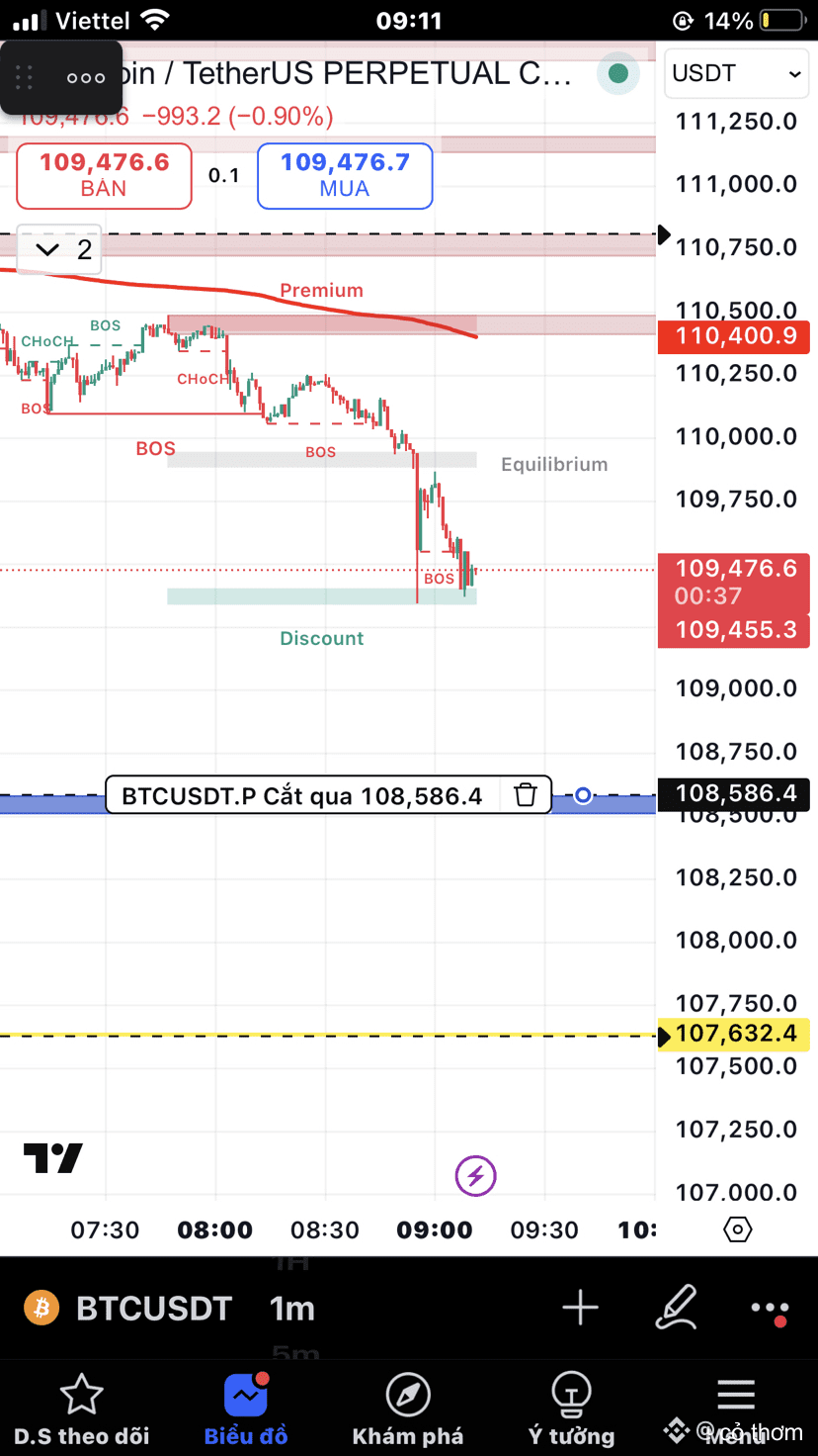 Hiện tại tại khung nhỏ ta có 2 vùng để về là 108.5 và Tp2 sẽ là 107.6. Tối hôm qua sau khi ko phá đc cản 111.6 thì nó đã xuống vùng 110 và đã phá cản đó. Vì vậy dám khẳng định $BTC sẽ có 2 Tp như trên. Còn có về ko vùng 99.7 thì đợi cây nến H1 sau sẽ trả lời. Ai thấy hay sau khi đạt lợi nhuận ở bài viết này nhớ cho em xin ly trà sữa nhé. Mãi yêu !