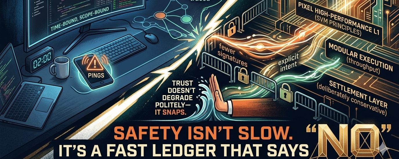There’s a persistent obsession in this space with transactions per second, as if speed alone were a proxy for resilience. i’ve sat in enough audit reviews to know better. Systems don’t fail because they’re slow; they fail because they trust too much, too broadly, for too long. Permissions expand quietly. Keys live longer than they should. Interfaces encourage approval without reflection. By the time anyone notices, the system hasn’t broken—it’s already been used exactly as allowed.
