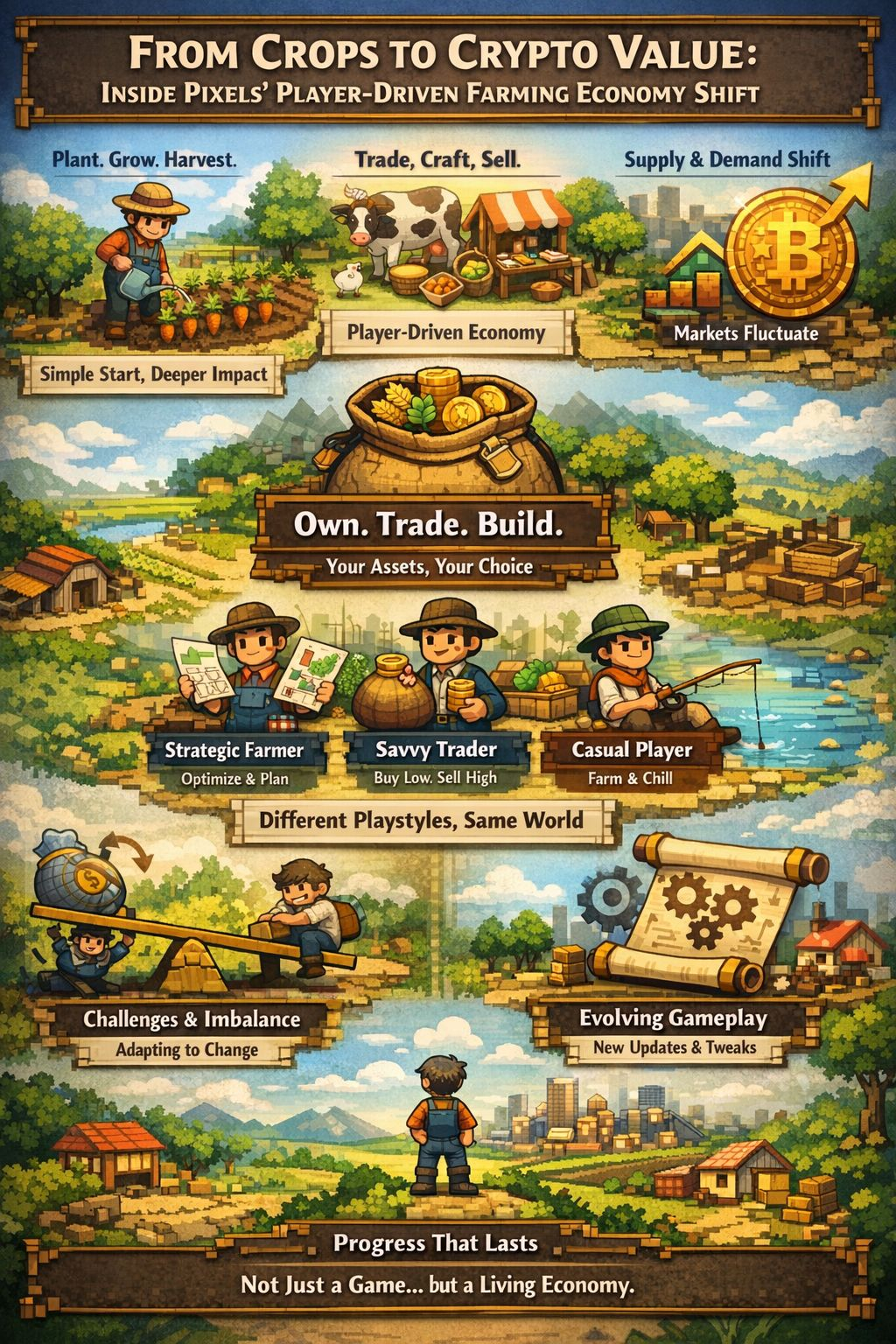 What makes this interesting isn’t the farming itself. Games have done that for years. It’s what happens after you harvest.