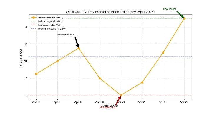 As of April 17, 2026, ORDI has shocked analysts by breaking out of its consolidation range of $2.25–$2.60. It is currently trading in a volatile range between $7.00 and $10.00, marking its most significant rally since the 2024 highs.