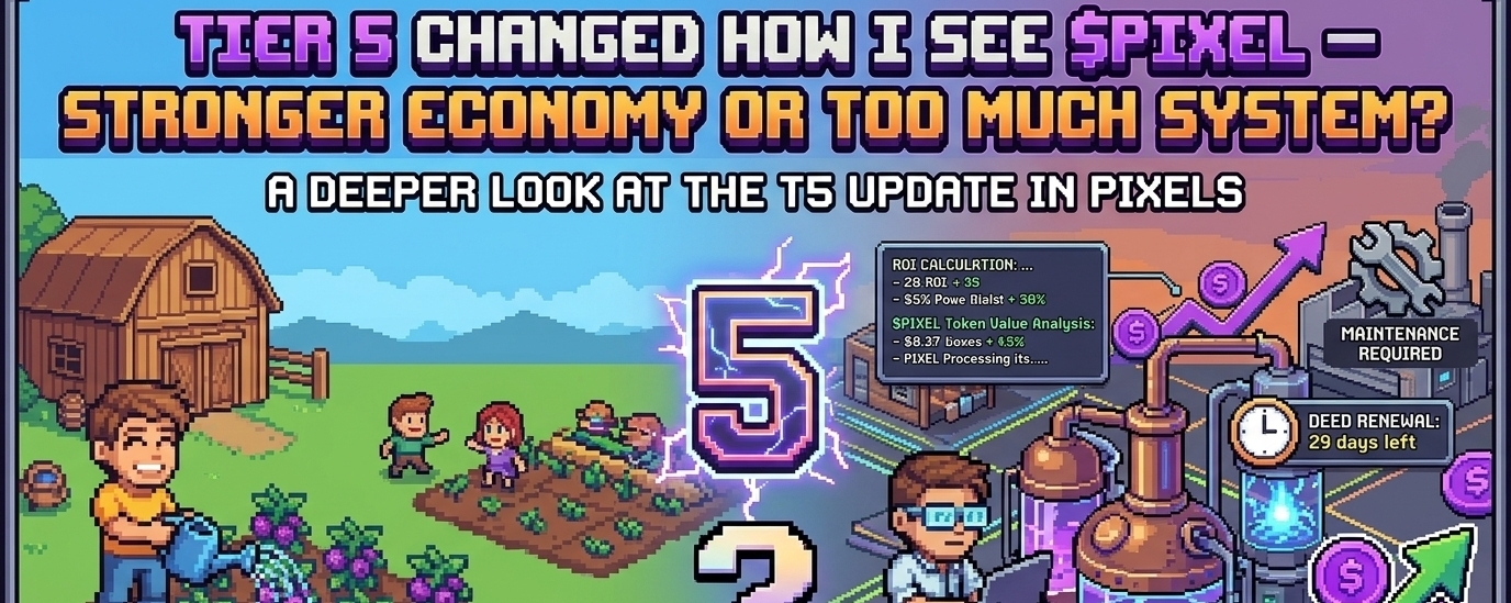 I’ve been thinking a lot about @Pixels after spending a couple of days testing the new Tier 5 update in Pixels. I didn’t go in with a strong opinion, just wanted to see if there was any edge to play. But the deeper I got, the more I realized this isn’t just “new content”—it’s a shift in how the whole system behaves.