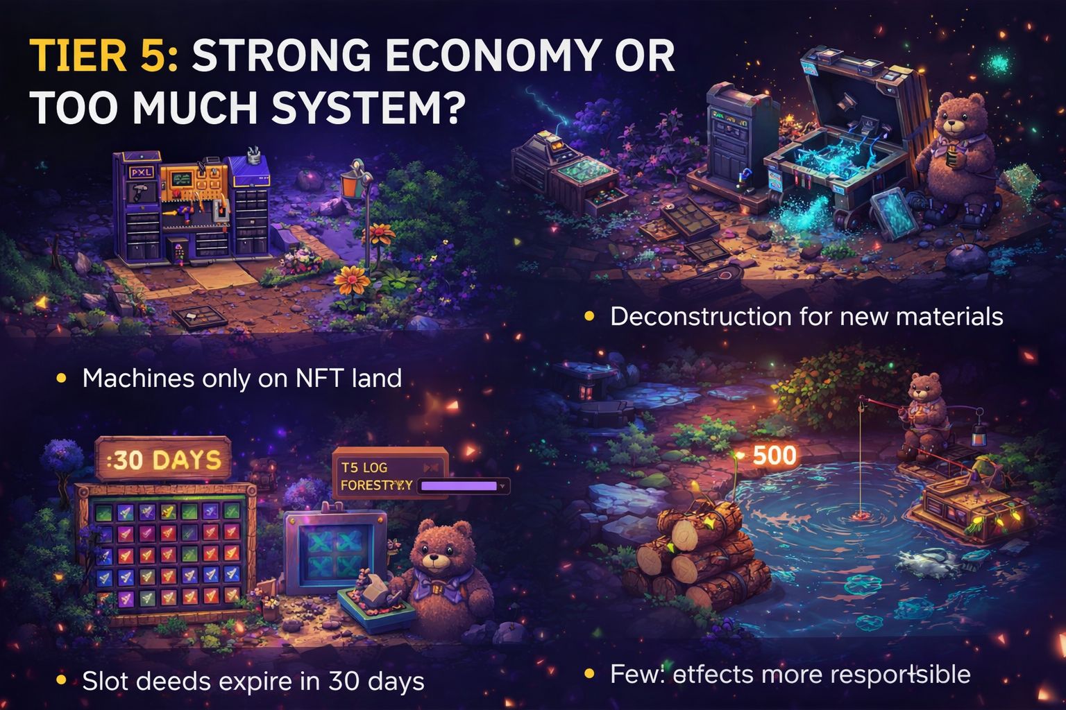 At first, it looks simple: new resources, new machines, higher tiers. Nothing surprising. But once I tried setting up a small T5 workflow, the friction became obvious. Industries now sit only on NFT land, slot deeds expire every 30 days, and suddenly you’re not just playing—you’re maintaining something. I actually missed a renewal on one setup during testing, and yeah… that small mistake made the system feel very real.