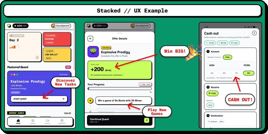最牛的是背后那个 Stacked 系统——这是 Pixels 团队自己从血泪史里迭代出来的奖励引擎,带 AI 游戏经济学家。AI 会分析玩家流失点、留存数据、LTV,精准地把奖励发给真正贡献价值的玩家,而不是让 bot 和刷子把池子吸干。官方数据说,他们已经在 Pixels 里处理了超过 2 亿次奖励,帮项目创收 2500 万美元以上,这不是 PPT,是真金白银跑出来的成绩。