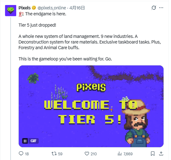@Pixels Pixels就是那个活了4年,还营收了2500万美元的神奇链游。4月16日刚刚上线了Tier 5(以下简称T5),这次更新不是提高产出,而是系统性提高销毁与折旧。兄弟们,这可不是玩法更新,这是一场围绕通缩的经济学重构呀!