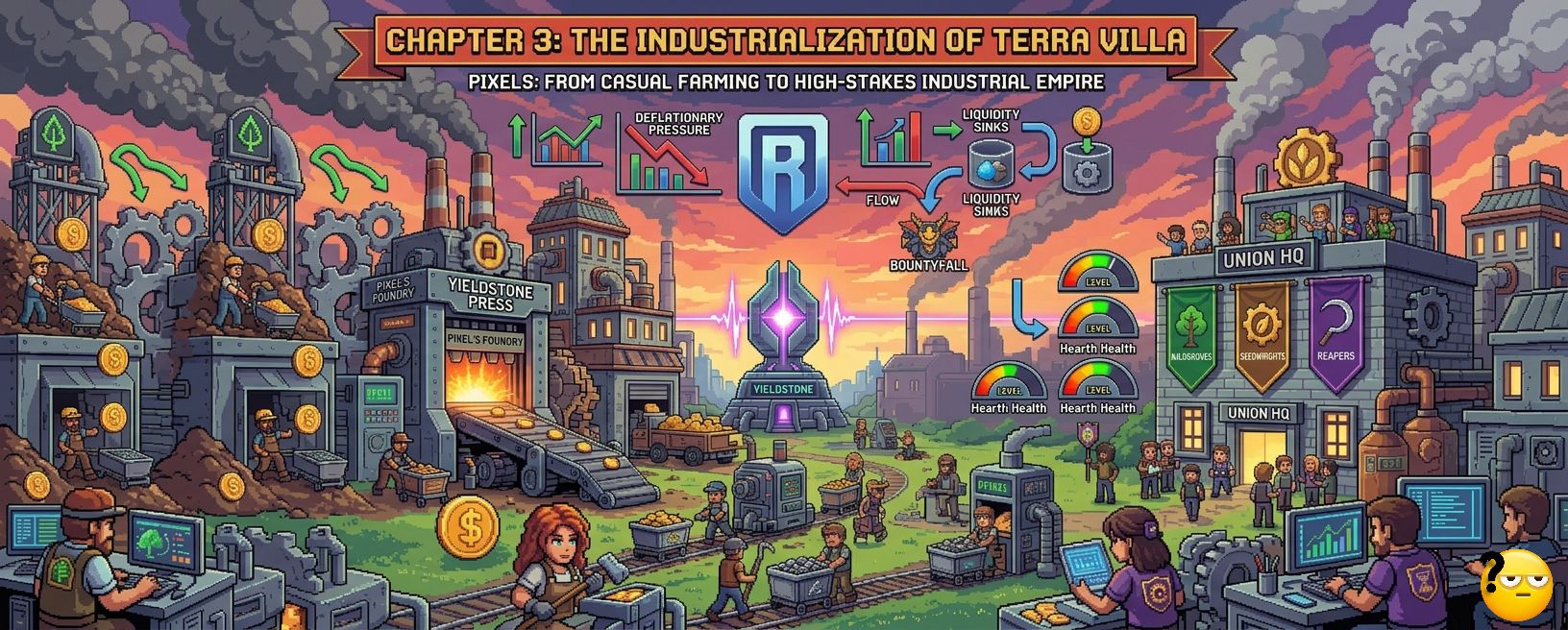 Questa non è solo lore. L'introduzione del Yieldstone Press crea un sistema economico sofisticato specificamente progettato per combattere la Velocità del Token. I giocatori sono ora costretti a reinvestire risorse nell'ecosistema per competere per la supremazia dell'Unione e una fetta più grande del $PIXEL pool di ricompense.