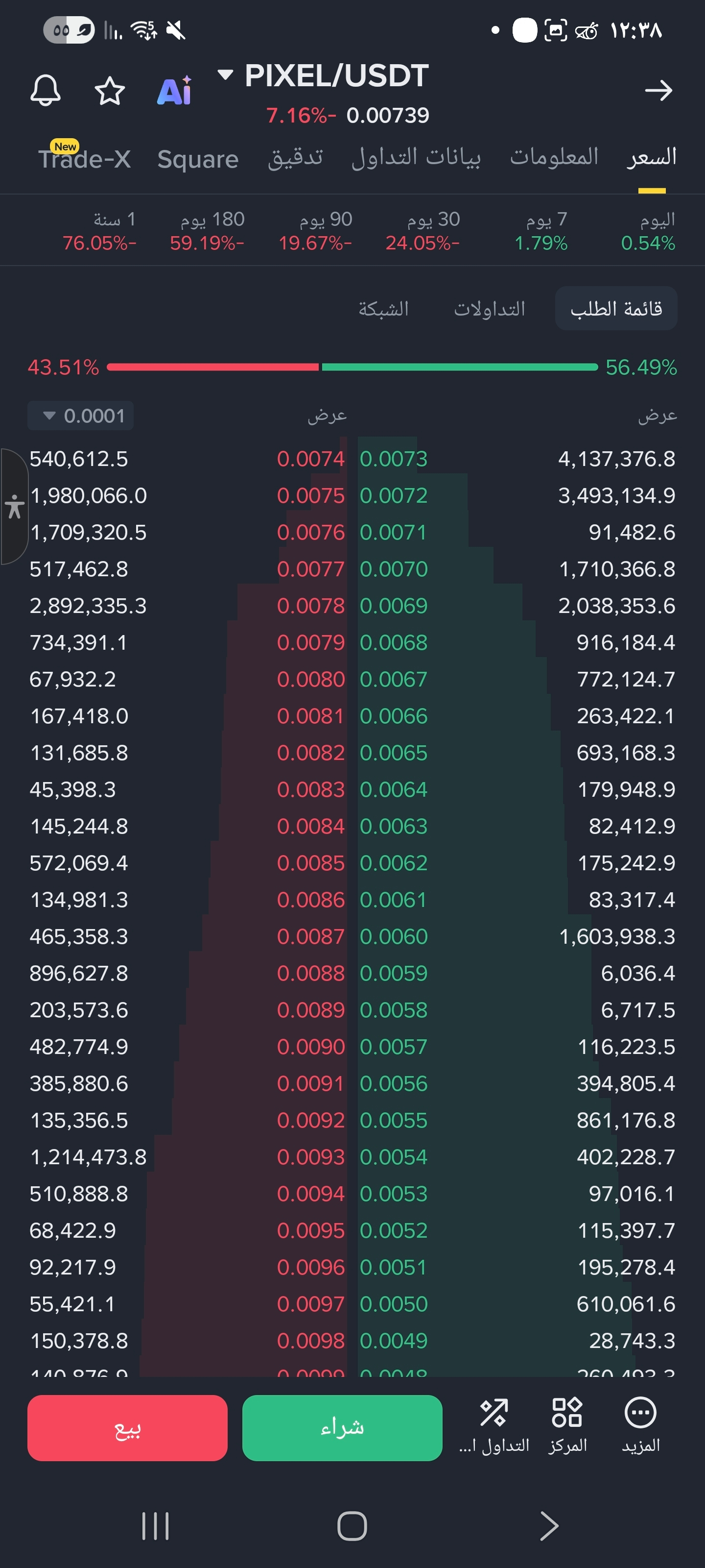Gli ordini di acquisto sono leggermente più forti (circa 56%) → Il supporto è presente