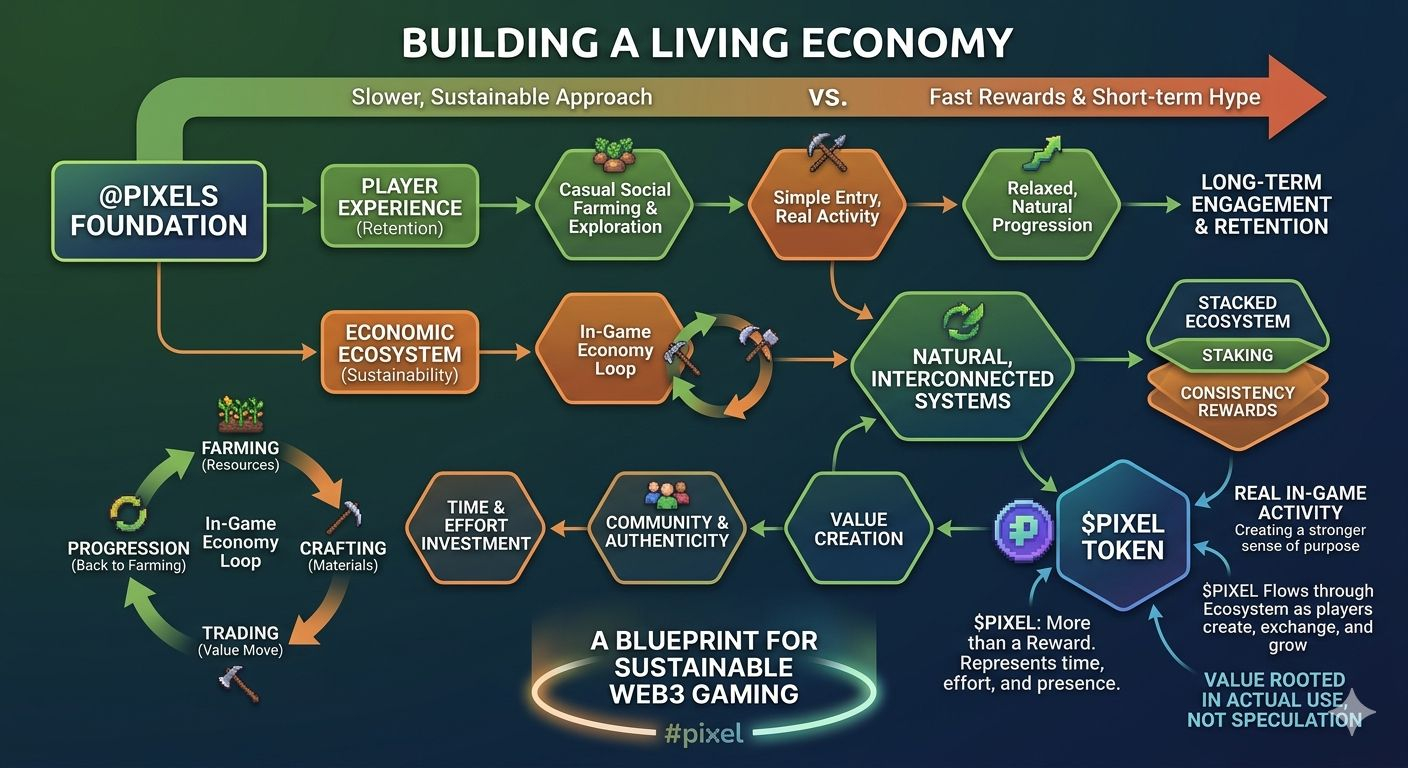 In a space where most Web3 games compete for instant attention, @Pixels is quietly taking a different route. Instead of pushing fast rewards and short-term hype, it focuses on something much harder to achieve — creating a world where players actually want to stay.