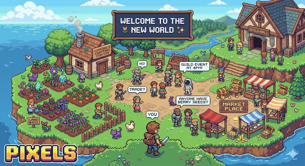 - *Play-to-Own*: Earn $PIXEL and items you actually own. Crafting, trading, and land gameplay feed into a player economy. Grind with purpose, not just for XP.