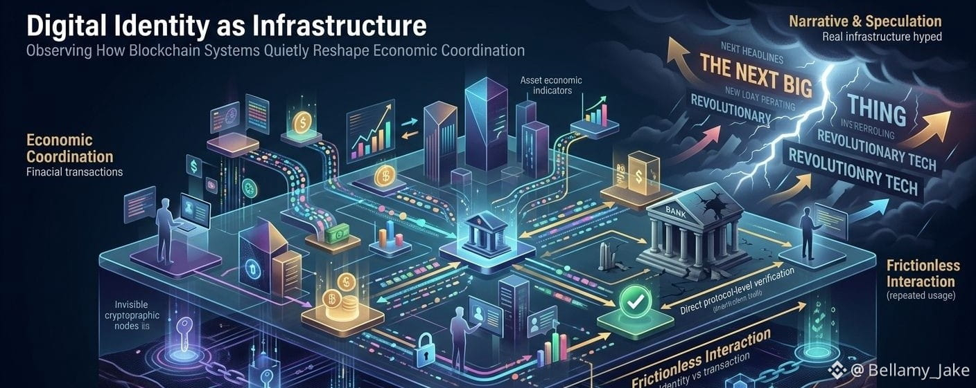 But markets rarely evaluate infrastructure based on long-term coordination. They tend to respond to narratives. I’ve watched many projects gain attention simply because the story surrounding them sounds strategically important. Identity infrastructure is particularly vulnerable to this. It sounds essential for the future of digital economies, which makes it attractive for speculation. Yet trading activity and market excitement often reflect expectations rather than actual usage. When I look at these systems, I try to ignore the narrative and focus on behavioral signals instead.