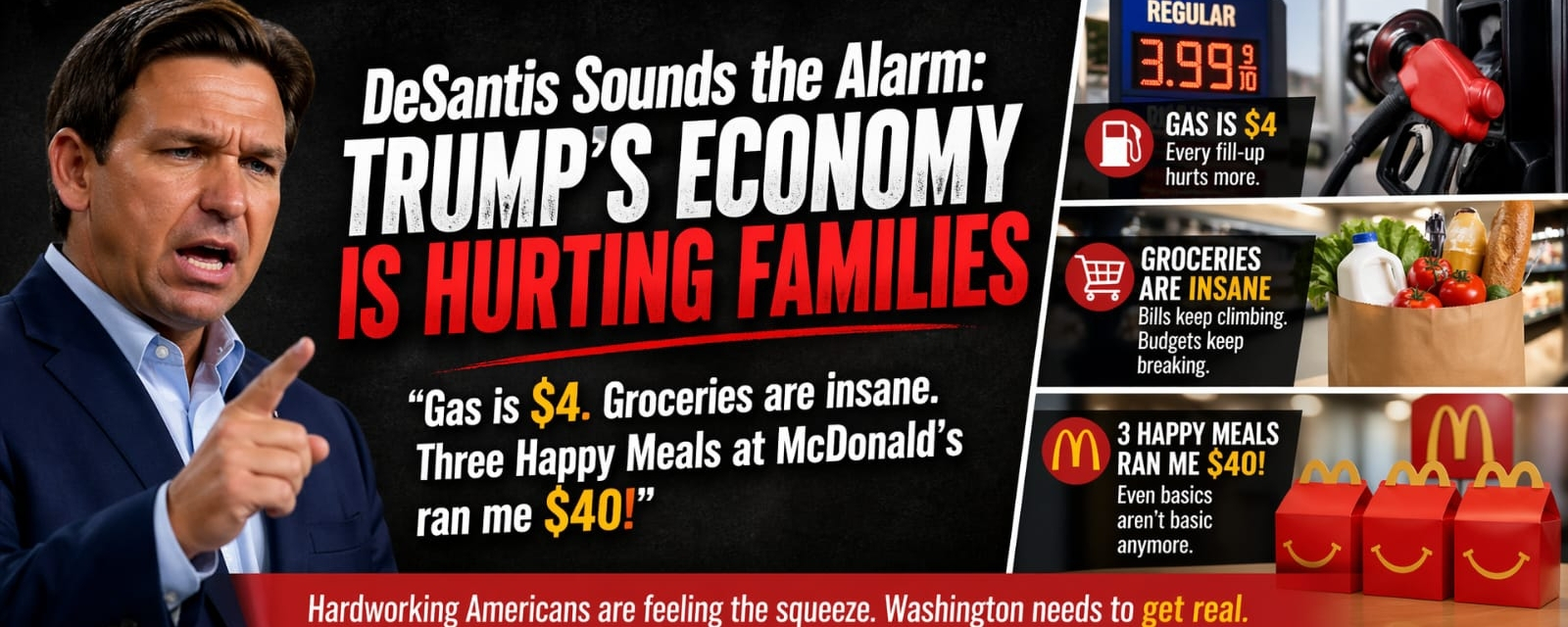 Over the past few hours, I’ve been watching a statement that taps directly into what a lot of people are feeling on the ground. Ron DeSantis openly criticized the current economic situation, pointing to $4 gas, rising grocery prices, and even saying three Happy Meals at McDonald's cost him around $40. From my perspective, this isn’t just political messaging—it’s reflecting real pressure people are experiencing daily.