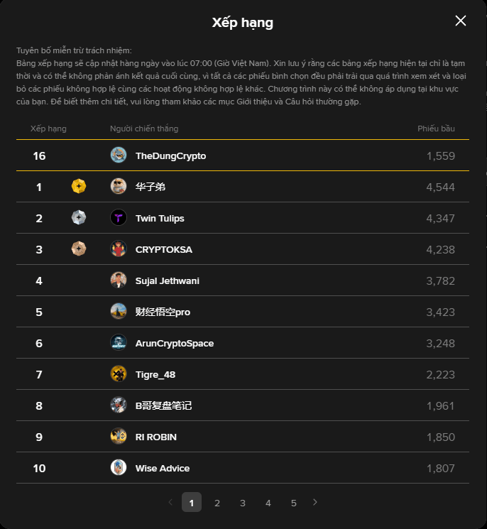 Modo di votare: Vai alla pagina del profilo personale: thedungcrypto e clicca sulla parte di voto qui sotto.