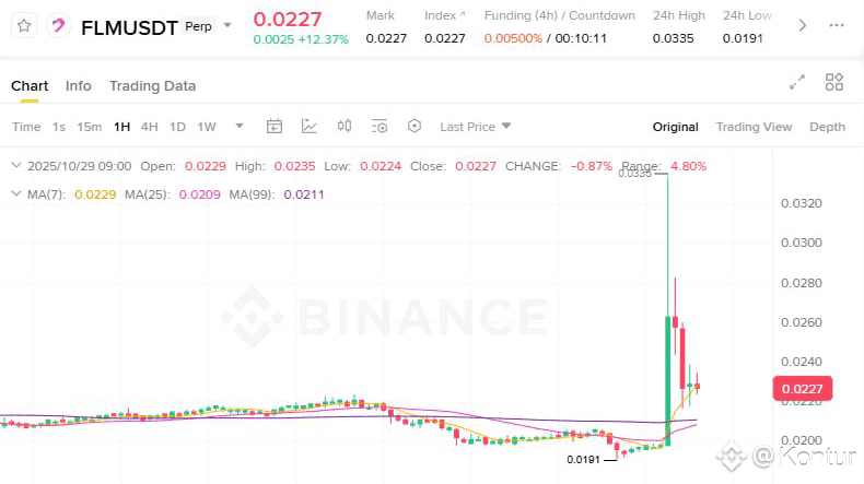 Медвежий сценарий (40%): Вход $FLM шорт на $0.025 (отбой). TP: $0.020 (-20%). SL: 4% ($0.026).