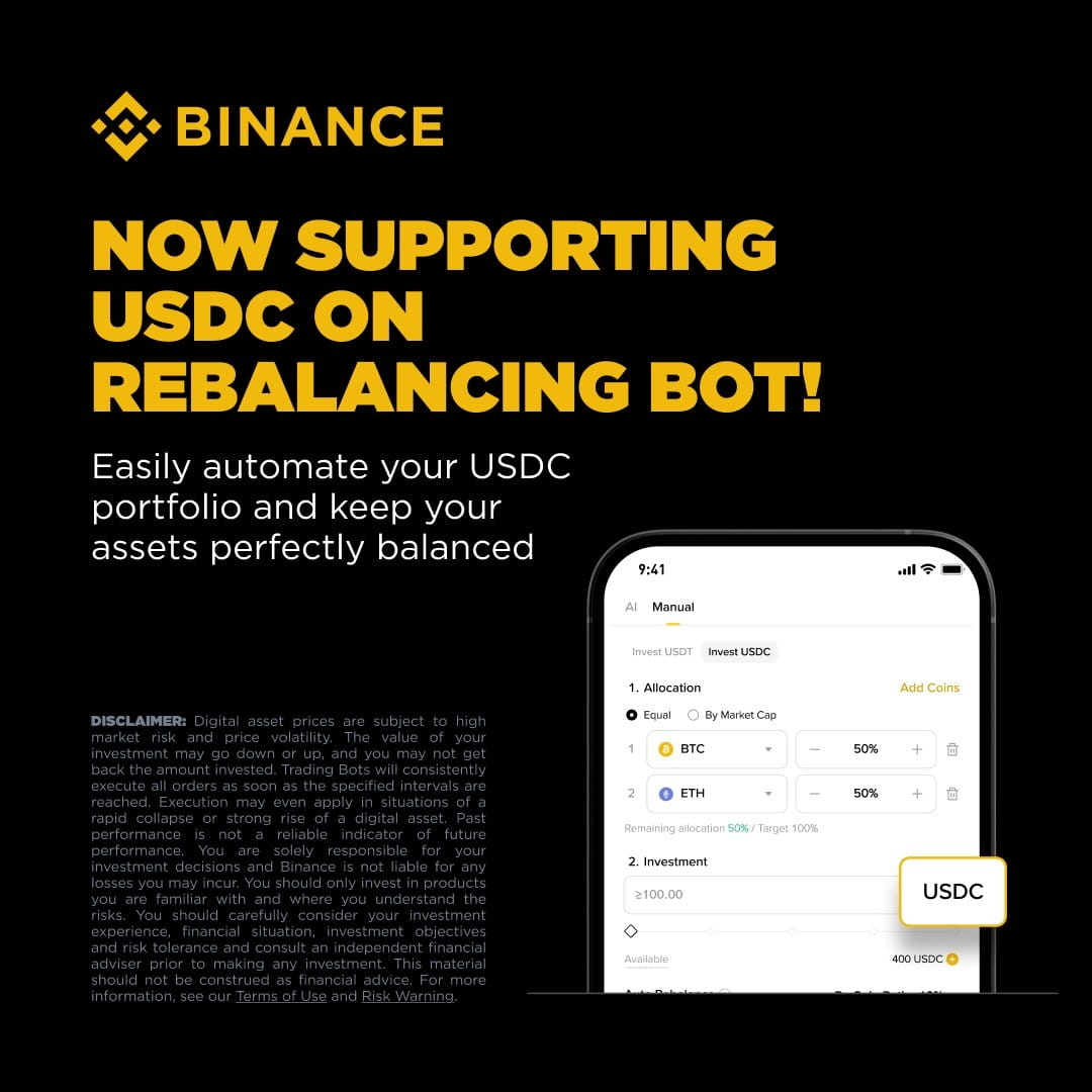 Grandi notizie per la gestione del tuo portafoglio! Ora puoi utilizzare USDC con il Binance Rebalancing Bot!