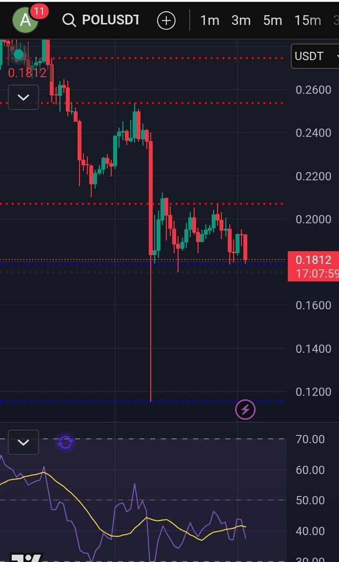 Dopo una forte correzione dalla zona di $0.24, POL sta attualmente testando la sua area di supporto vicino a $0.17–$0.18, che ha tenuto negli ultimi giorni. Nonostante il volume basso, il mercato sembra stia entrando in una fase di consolidamento, suggerendo che gli acquirenti potrebbero accumulare silenziosamente a questi livelli.