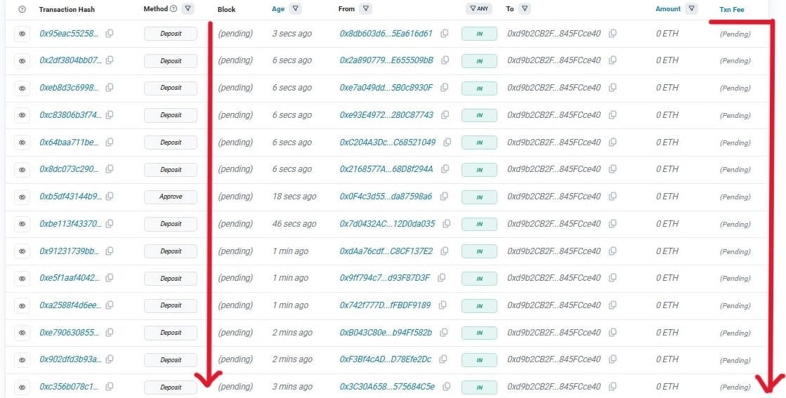 Tutto è trasparente questa volta, le regole sono chiare, le soglie elevate -- eppure l'hype è così intenso che anche Etherscan non riesce a tenere il passo. Transazioni in sospeso ovunque.