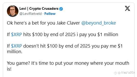 In un post virale su X, ha offerto di pagare a Claver $1 milione se XRP raggiunge i $100 entro la fine del 2025.