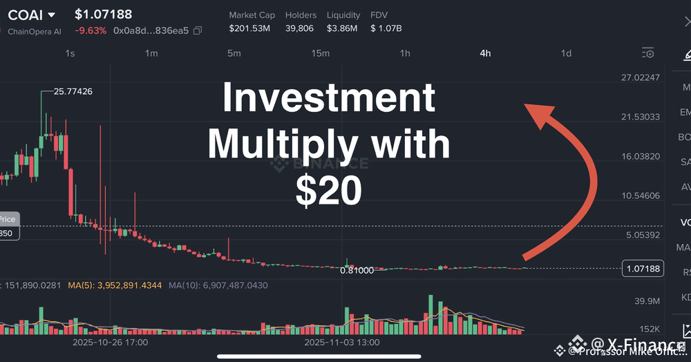 Il grafico mostra chiaramente cosa sta arrivando $COAI è stato consolidato per un bel po' di tempo, e la struttura del volume ora indica che un movimento potente sta per iniziare. Questo tipo di calma prima dell'espansione di solito finisce con un'esplosione, e tutti i segnali tecnici puntano in quella direzione.