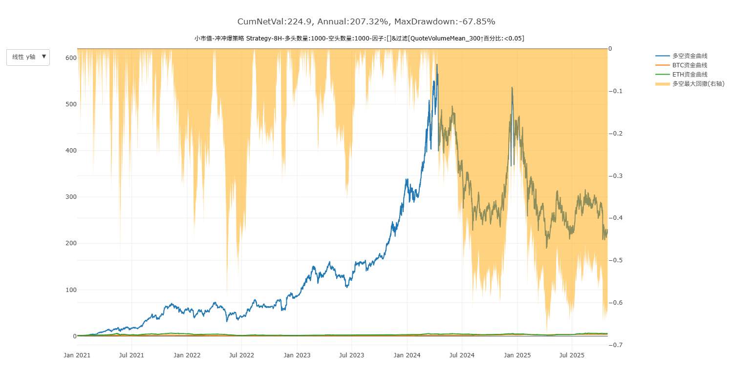 Dallo grafico si può anche notare che la strategia non è sempre efficace. Questo è particolarmente evidente durante la stagione delle altcoin (le due onde di rialzo nel grafico). Tuttavia, durante un mercato orso, non ci saranno grandi ritratti. Infatti, nel mondo delle criptovalute, i fattori a bassa capitalizzazione sono a lungo termine efficaci.
