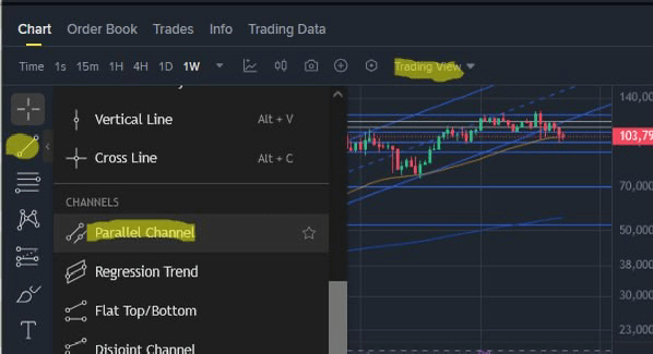 Binance ha uno strumento molto utile chiamato Parallel Channel. Testeremo sul grafico BTC.