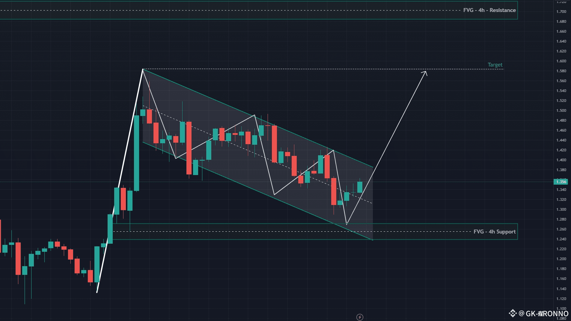Una potenziale rottura rialzista potrebbe mirare all'area di $1.58, allineandosi con il canale superiore e la zona di resistenza 4h.