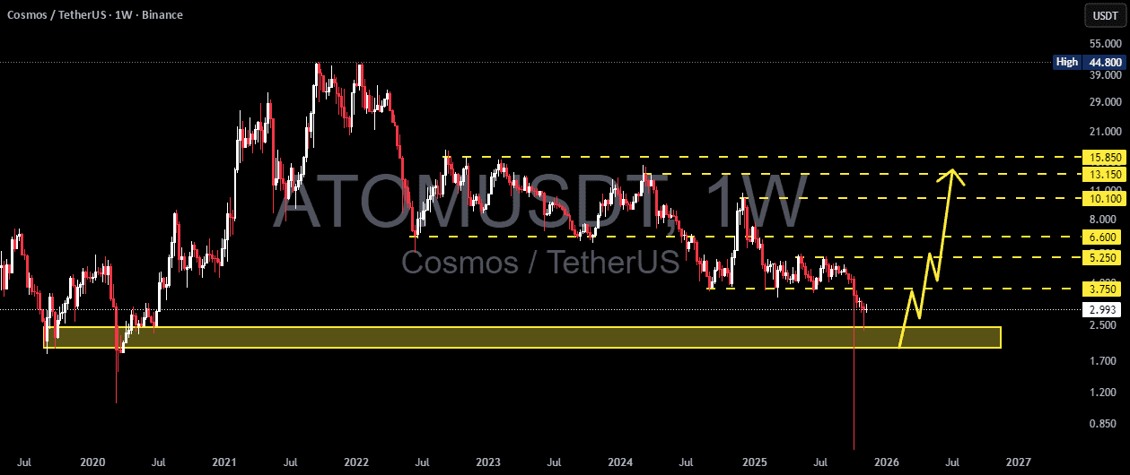 Se l'area 2.45–1.95 si mantiene, potremmo assistere alle fasi iniziali di un grande recupero di ATOM, diretto verso il range di 5–10 dollari USA. Ma se viene rotta, la struttura rialzista a lungo termine collassa ufficialmente, e il mercato potrebbe cercare di bilanciarsi a un livello molto più basso.