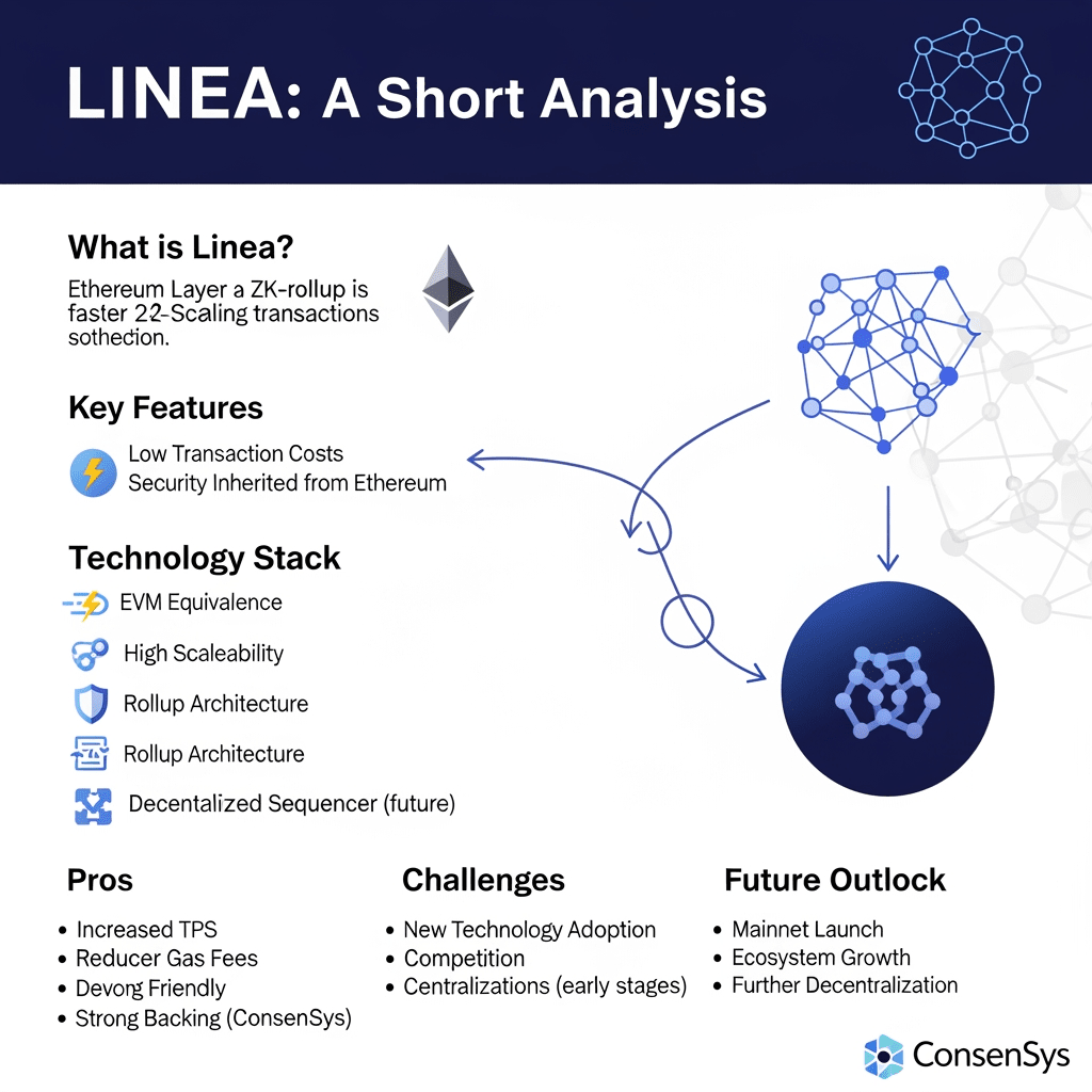 Linea è una rete Ethereum Layer 2 (L2) creata da Consensys. Utilizza una tecnologia simile a zk-rollup (specificamente zkEVM) per offrire: