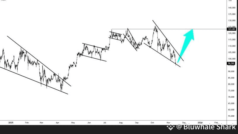 Un modello di triangolo discendente nell'analisi tecnica è tipicamente considerato un modello di inversione rialzista quando si forma dopo un trend ribassista, oppure un modello di continuazione rialzista quando appare durante un trend rialzista. Nel contesto del Bitcoin (BTC), un triangolo discendente suggerisce una potenziale rottura al rialzo dopo un periodo di consolidamento e riduzione della volatilità.