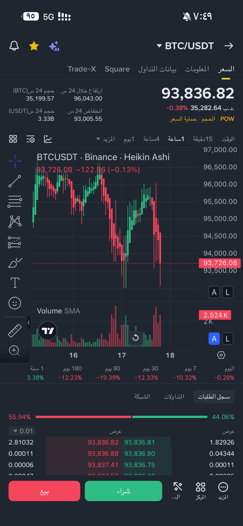 🟢 Aspetta una stabilizzazione sopra 94.500