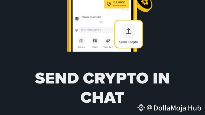 Binance ha introdotto una nuova funzione che ti consente di inviare crypto direttamente all'interno delle tue conversazioni in chat — nessun cambio di scheda, nessuna copia degli indirizzi del portafoglio, nessuno stress.