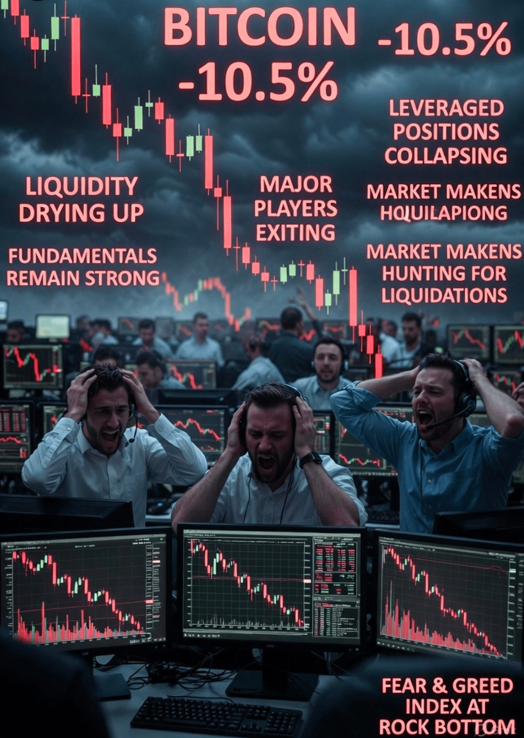 Lo spazio delle criptovalute è stato colpito duramente, perdendo più di $1.1 trilioni di valore negli ultimi 40 giorni, senza segni di un rapido recupero. Gli investitori si stanno grattando la testa, chiedendosi se si tratta solo di un calo temporaneo o dell'inizio di qualcosa di più brutto. Ma analizziamo la situazione: ecco perché stiamo vedendo questa carneficina e perché potrebbe effettivamente segnalare che il peggio è quasi alle spalle. Fattori Chiave Dietro il Crollo: La Liquidità è Svanita da un Giorno all'Altro: Intorno al 10 ottobre, la liquidità di trading è scomparsa rapidamente, rendendo difficile per i prezzi mantenere la stabilità mentre gli acquirenti si ritraevano.