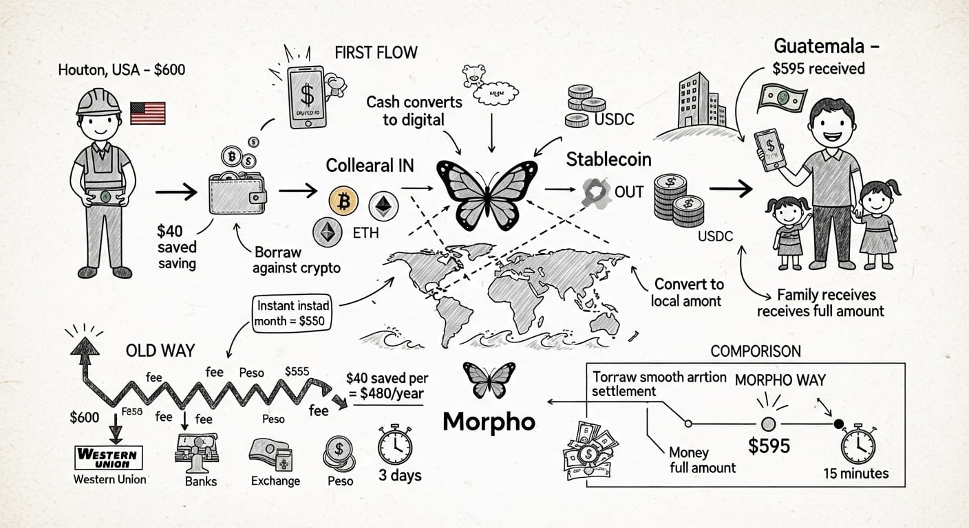 Questo conta enormemente per la psicologia dell'adozione. Molti lavoratori migranti accumulano risparmi in crypto proprio perché non si fidano delle banche tradizionali e cercano di preservare valore attraverso i confini. In precedenza, utilizzare quelle partecipazioni in crypto per le rimesse significava venderle, attivando tasse e perdendo potenziale di apprezzamento futuro. Il prestito alimentato da Morpho risolve completamente questo problema.
