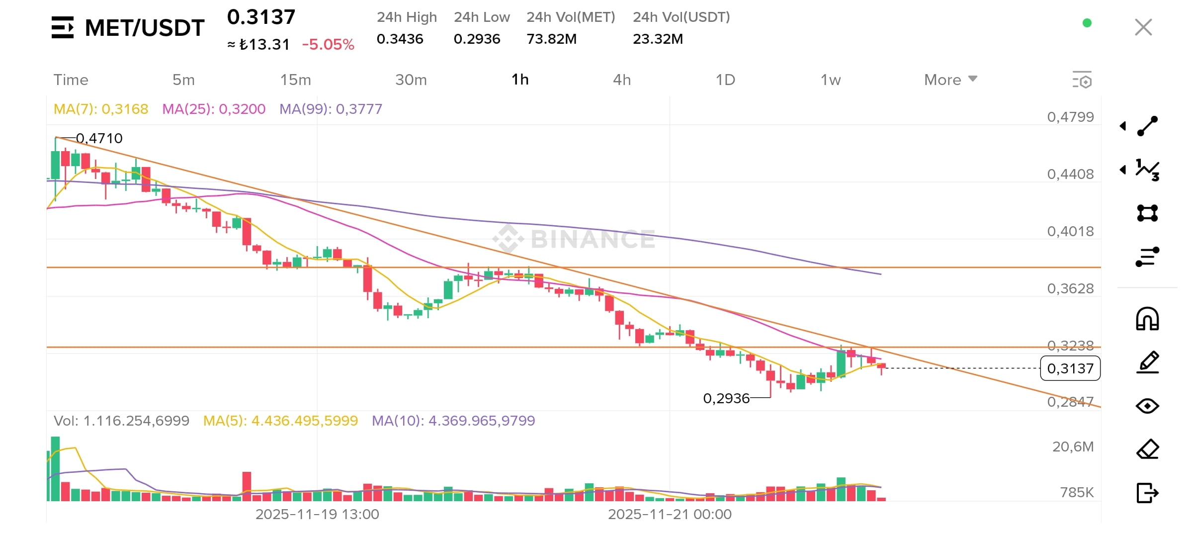 Met deve avere un prezzo di chiusura superiore a 0,3280 allora possiamo parlare di un aumento.