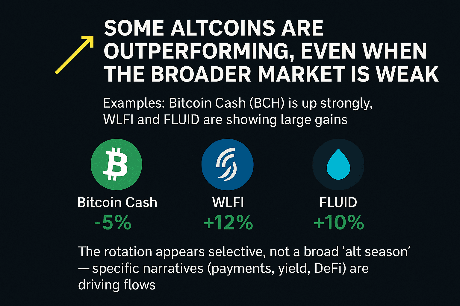 Alcuni altcoin stanno sovraperformando, anche quando il mercato più ampio è debole.