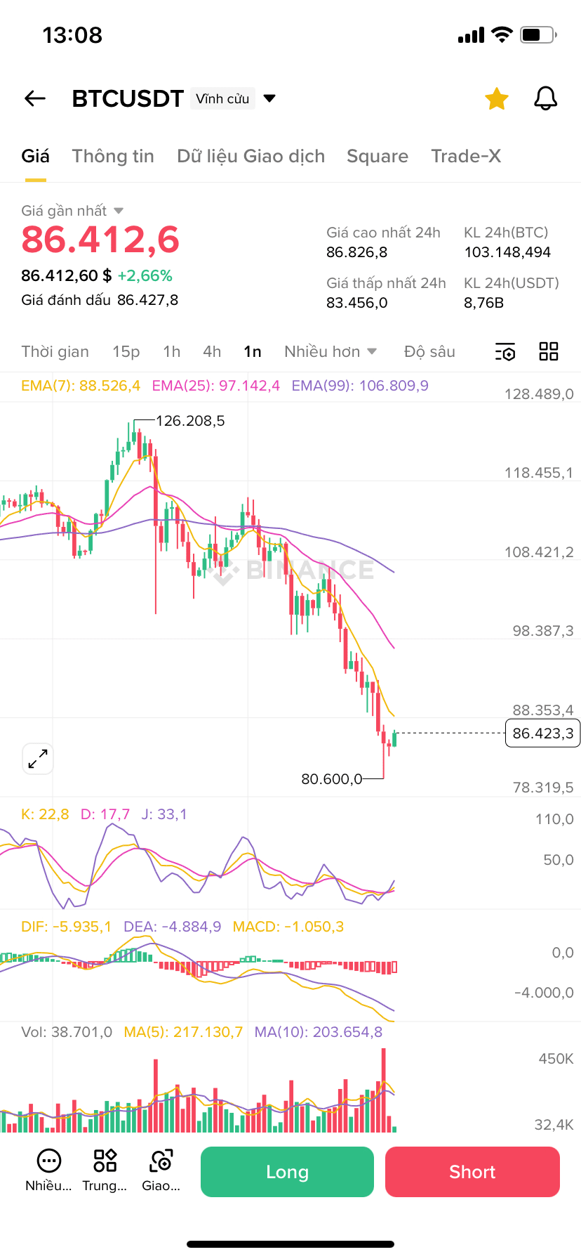 Bitcoin #BTC ha subito un grande calo di circa il 35%, questo è un punto interessante per entrare per chi gioca in spot, personalmente penso che BTC subirà un'ultima correzione (un minimo di circa 78k) e poi salirà fino a 100k, quindi ora sto aprendo un ordine short e poi long di nuovo a tp