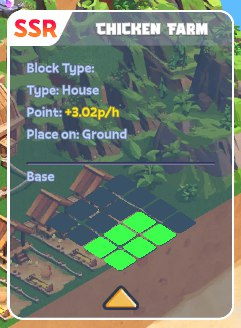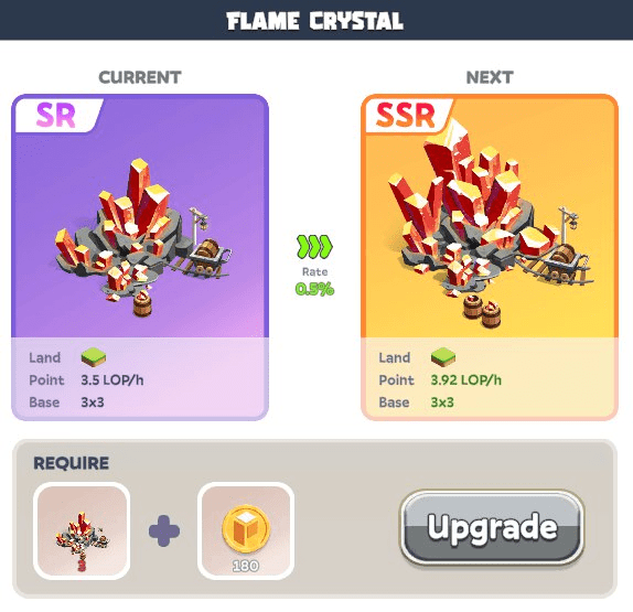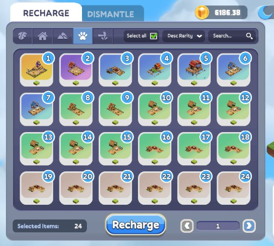 Suggerimento/Trucco: Dai priorità all'aggiornamento di oggetti/edifici ad alto impatto. La rarità degli oggetti può essere aumentata fondendo tre NFT identici dello stesso tipo.