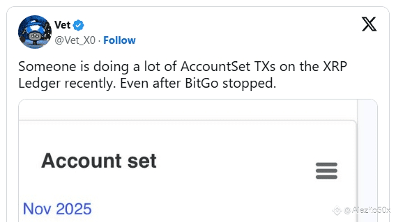 El XRPL ha registrato un aumento repentino di oltre 40.000 transazioni di AccountSet 💥 in un breve periodo. Gli analisti credono che il volume e l'organizzazione suggeriscano una configurazione dell'infrastruttura su larga scala. 🏗️