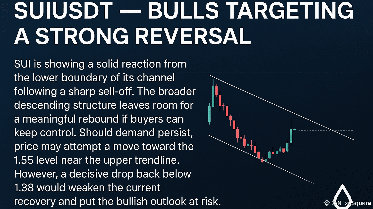 Reazione forte dal canale inferiore mentre SUI cerca di scrollarsi di dosso la recente vendita. Se i compratori continuano a spingere, un movimento verso **1.55** potrebbe essere in programma. Ma attenzione — perdere di nuovo **1.38** romperebbe il momentum e indebolirebbe il caso rialzista.