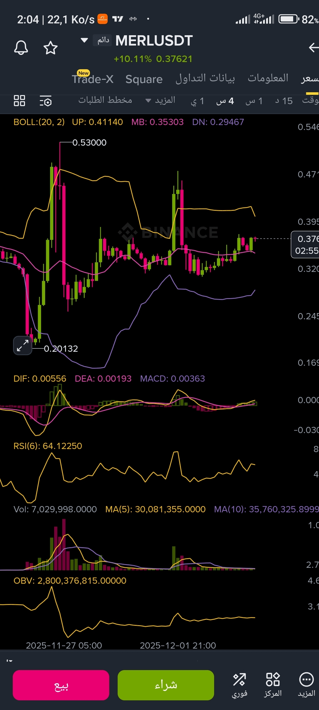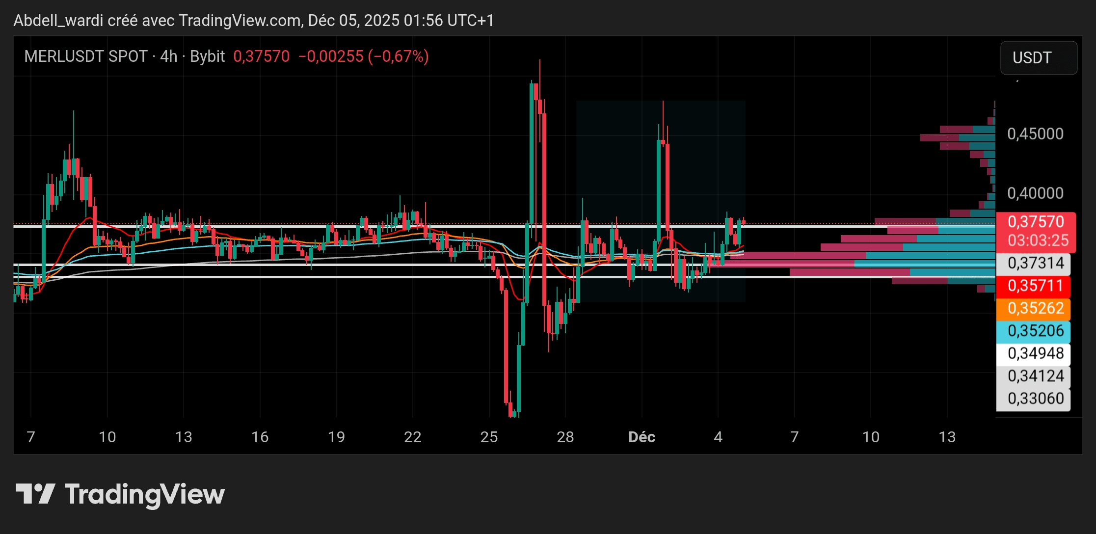 Il prezzo sta affrontando una resistenza chiara quasi a: 0.375 – 0.378 USDT