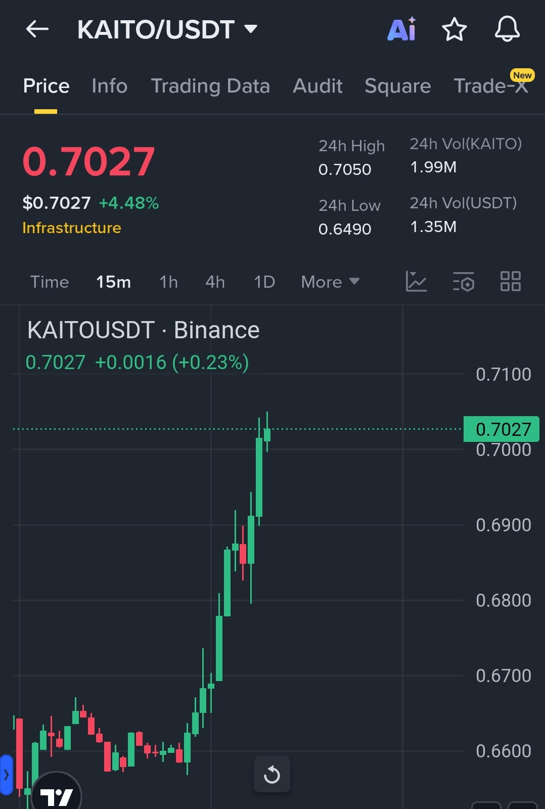 $KAITO sta rompendosi verso l'alto con forte slancio rialzista! ๐ฅ Il grafico 15M mostra una candela di breakout pulita mentre i compratori prendono il controllo. Se questa forza continua, aspettati una spinta fluida verso la prossima zona di resistenza! ๐