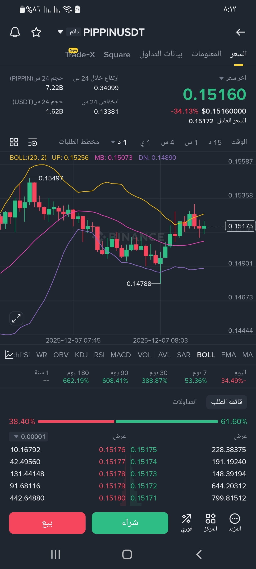 - Area di ingresso (sell): $0.1530 (vicino al prezzo attuale)