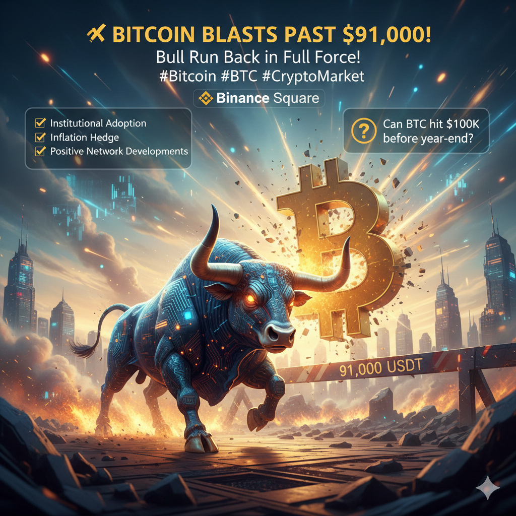 Il breakout di Bitcoin sopra $91.000 segna una pietra miliare importante alimentata dalla fiducia istituzionale e da forti fondamentali di mercato. Che tu stia facendo trading o mantenendo, rimani concentrato sul quadro generale — il momentum del mercato rialzista è appena iniziato. ⚡