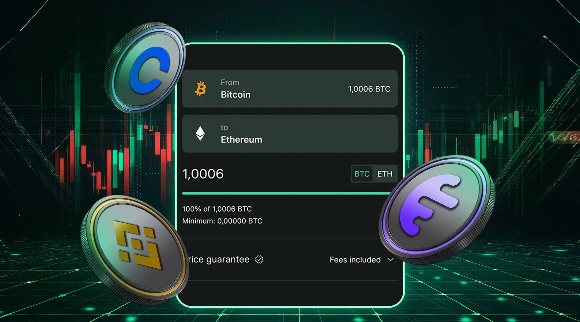 Per i migliori tassi: l'algoritmo di pricing intelligente di Changelly attinge a tassi ottimali attraverso oltre 20 scambi.