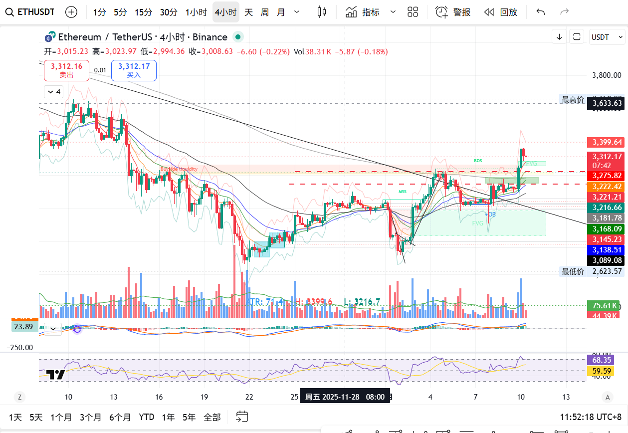 ETH: dopo la rottura, il test di ritracciamento ha avuto successo, obiettivo 3600-3800, supporto 3135-3200;