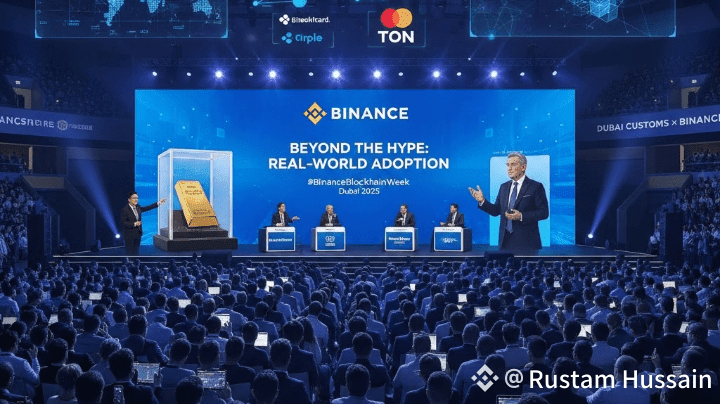 Quella era la scena nei corridoi dell'Arena Coca-Cola a Dubai, che ha appena ospitato il più grande raduno di innovatori, regolatori e giganti istituzionali di crypto: Binance Blockchain Week 2025. Molto più di una conferenza, il raduno di quest'anno ha segnato un punto nel tempo - un momento in cui l'industria è passata decisamente da un esperimento speculativo a un vero strato fondamentale della finanza e del commercio globale. L'adozione nel mondo reale non sembra più una proiezione ma un' realtà. Il tema era semplice e chiaro: