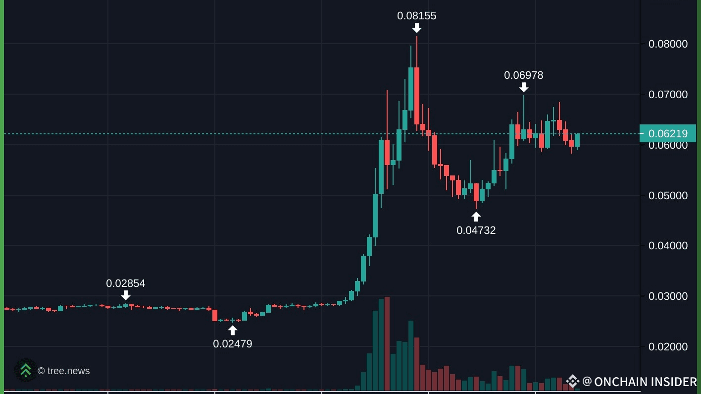 Il prezzo ha rifiutato il massimo delle 24 ore (0.06845) e si sta consolidando vicino al minimo delle 24 ore (0.05828). Le recenti candele mostrano stoppini verso il basso, indicando interesse all'acquisto a livelli inferiori.