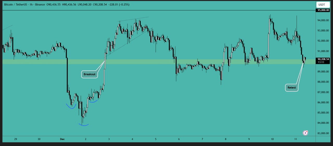 Bitcoin ha faticato a raggiungere il traguardo dei $95.000 e ha subito un calo dei prezzi a seguito della notizia di un taglio dei tassi. Il prezzo sta attualmente ritestando l'area dei $90.000, ed è fondamentale che si mantenga al di sopra di questo livello. Una chiusura al di sotto di $90.000 sarebbe considerata ribassista, quindi dobbiamo monitorare come il prezzo reagisce.