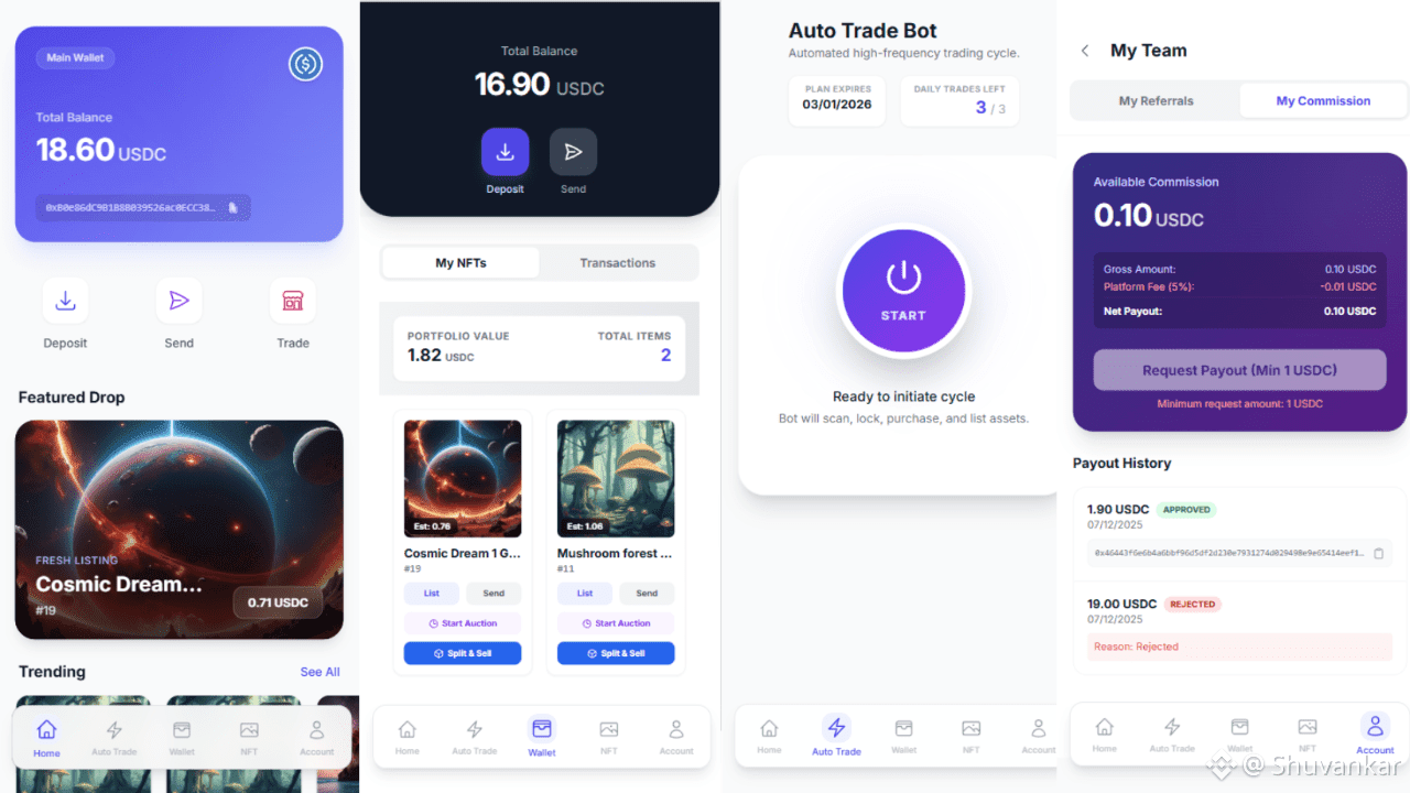 La piattaforma utilizza logica intelligente per regolare i prezzi in base all'attività. Non hai bisogno di conoscenze o esperienza avanzate nel trading. Scegli semplicemente un NFT, osserva come cresce e decidi quando mantenere o scambiare di nuovo. Il sistema tiene tutto in funzione senza intoppi in background.