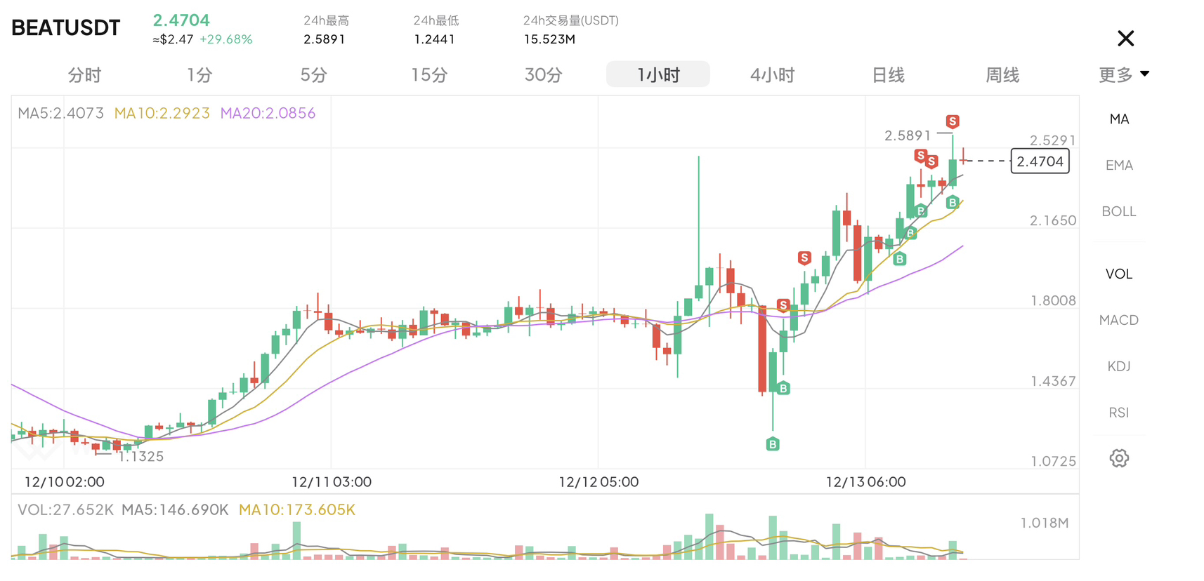 Mentre l'intero mercato è in lateralità e le emozioni oscillano, #beat è esploso come se fosse stato improvvisamente acceso, accelerando e raggiungendo facilmente un guadagno giornaliero del 100%+. Non è che non abbia guadagnato, ho effettivamente realizzato profitti in alcune occasioni con il “compra basso, vendi alto”, ma quasi ogni volta che vendevo, il prezzo toccava immediatamente un nuovo massimo. Quella complessa emozione di guadagnare e pentirsi simultaneamente, la comprendono solo coloro che hanno realmente partecipato.